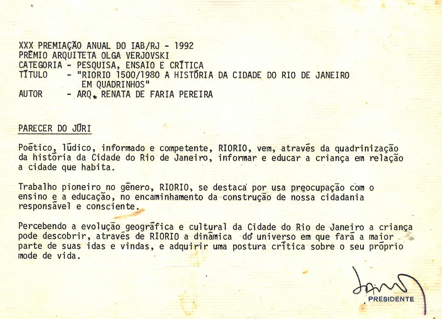 O trabalho é de autoria de Renata de Faria Pereira, professora, Mestre em Conservação e Restauro.