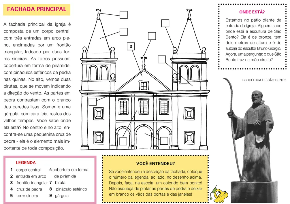 Trata da arquitetura, da arte e da história da Igreja do Mosteiro de São Bento, assim como da história do santo padroeiro e do sentido religioso das imagens e ornamentos da igreja. Incentiva o olhar dos estudantes a contemplar a beleza da arte sacra de uma das mais bonitas igrejas do Brasil.