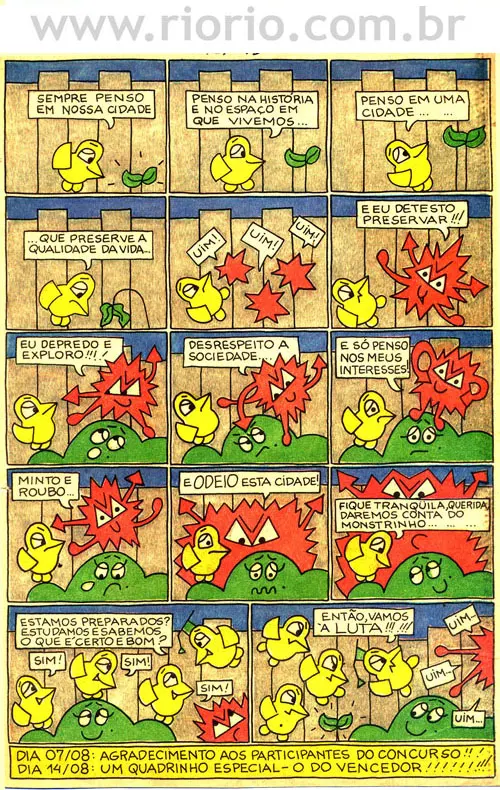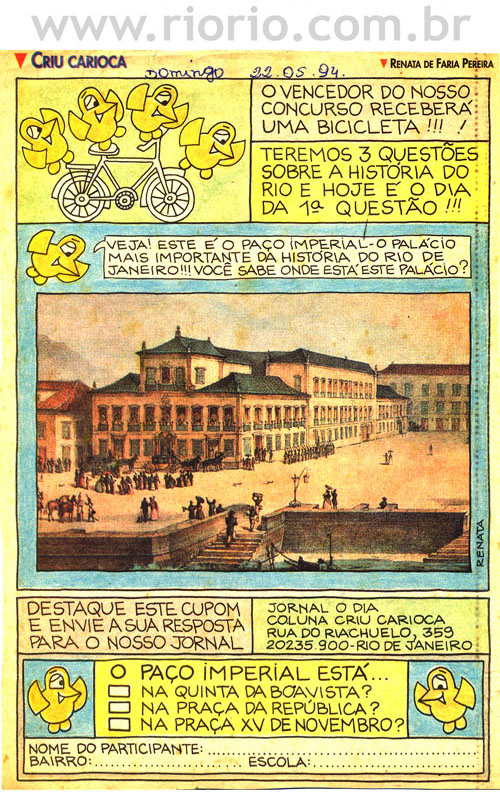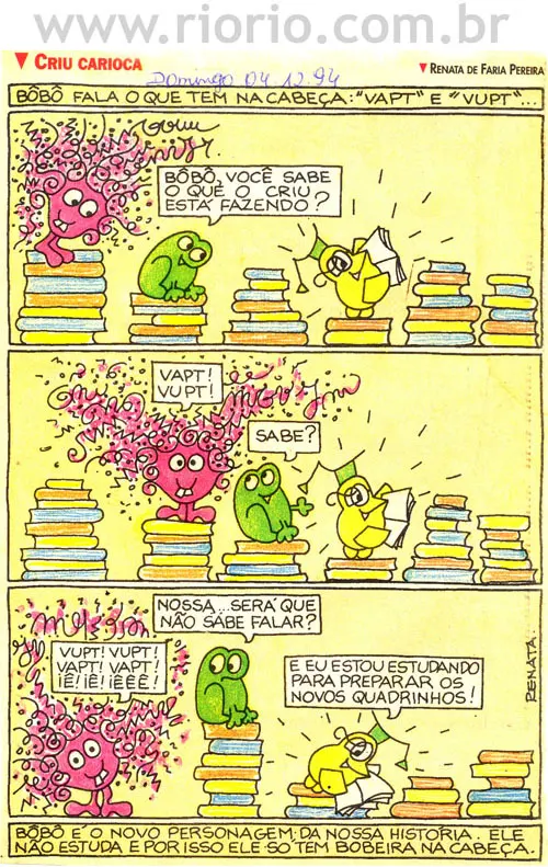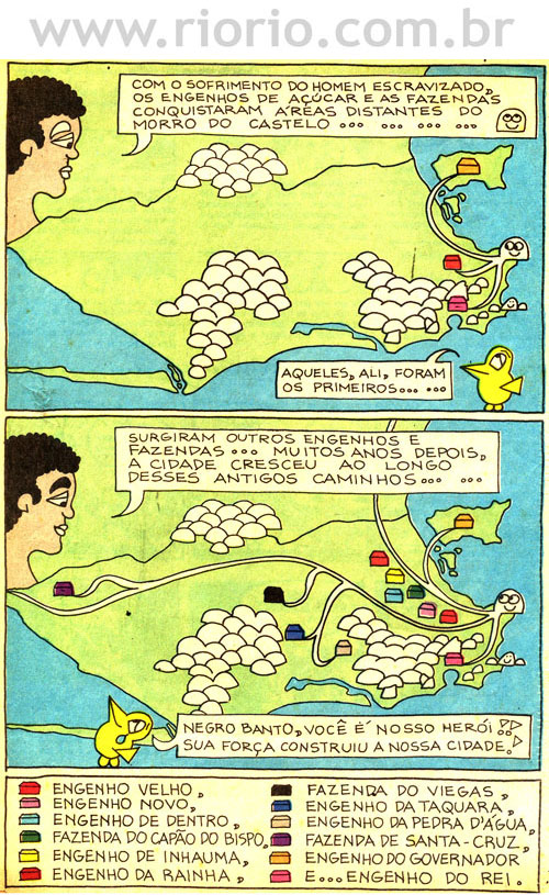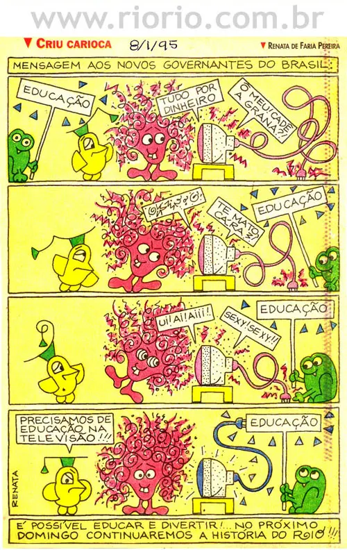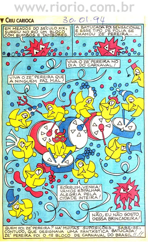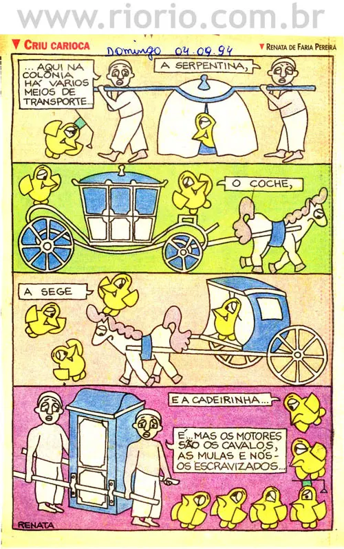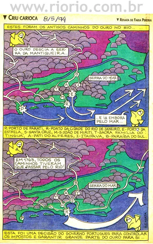 Apresentam-se, a seguir, alguns quadrinhos da coluna Criu Carioca, publicada aos domingos, em um jornal da cidade do Rio de Janeiro, entre os anos de 1993 a 1995. Os quadrinhos sobre a história do Rio que reproduzimos aqui são para o seu entretenimento! Procuraremos sempre que possível colocar novos quadrinhos! Bom proveito!
